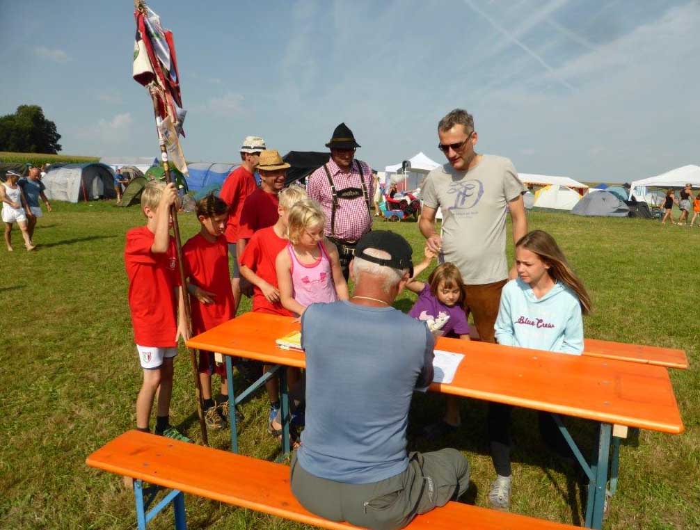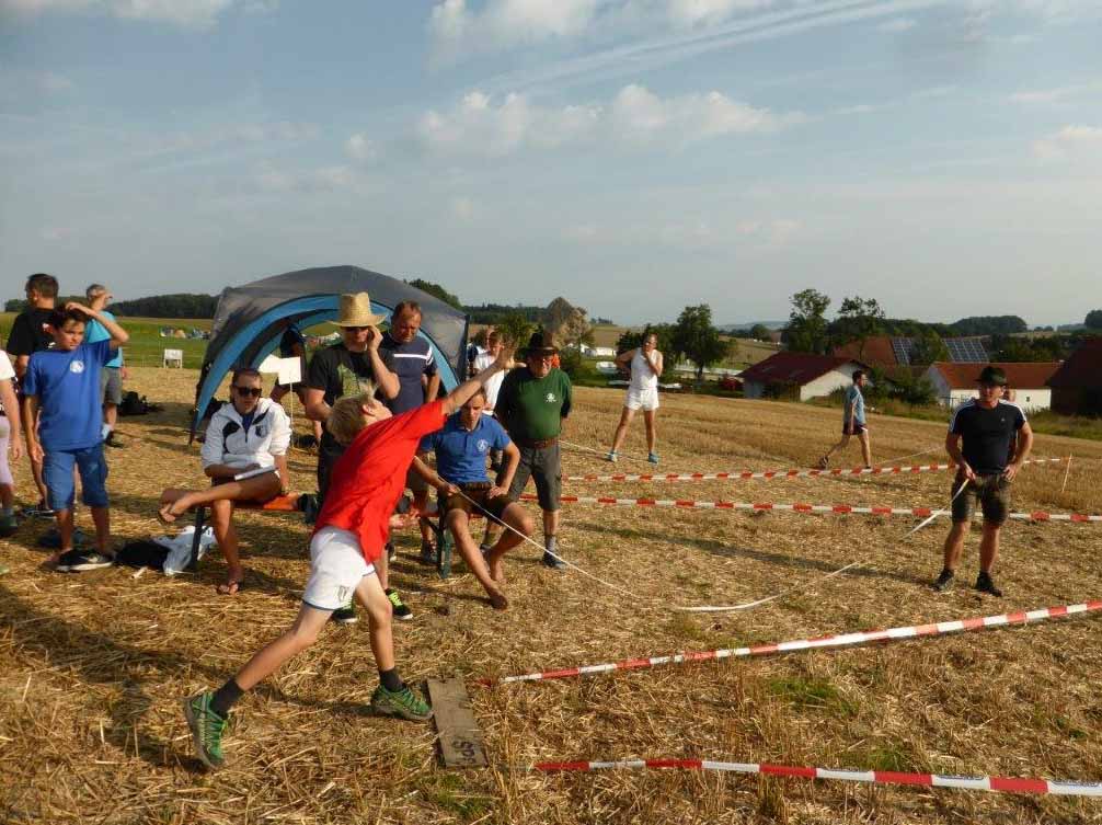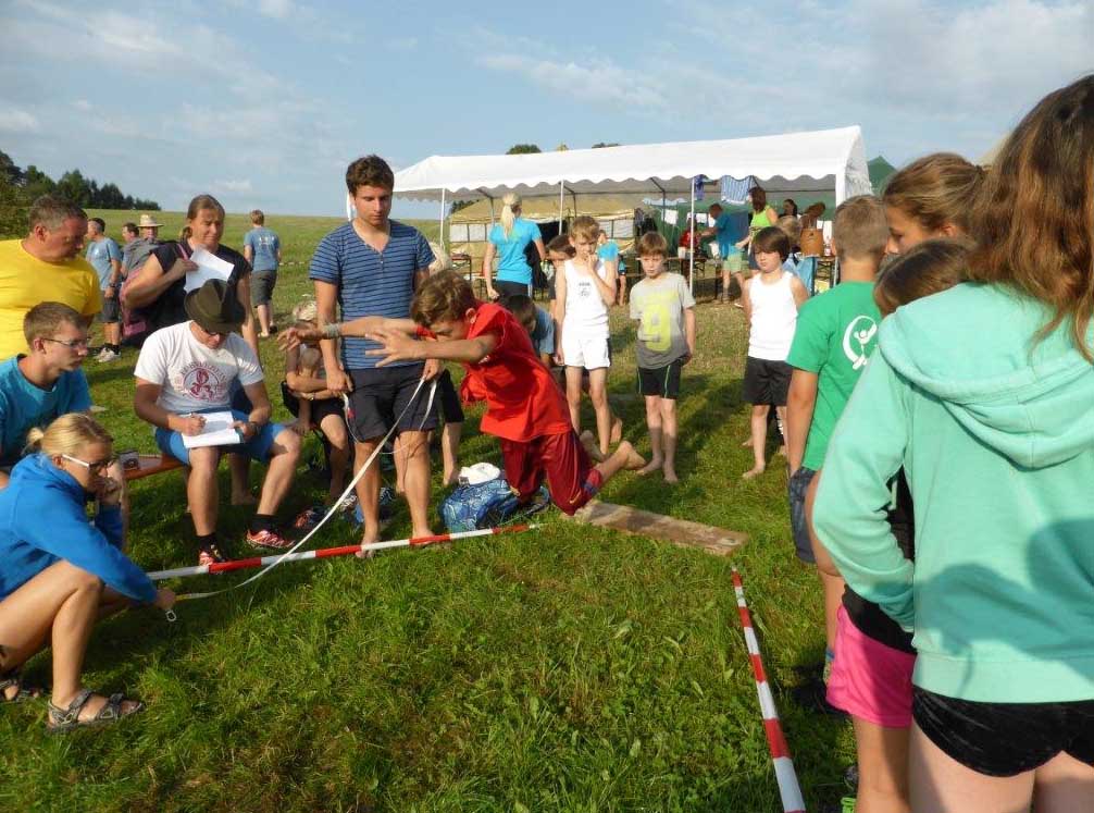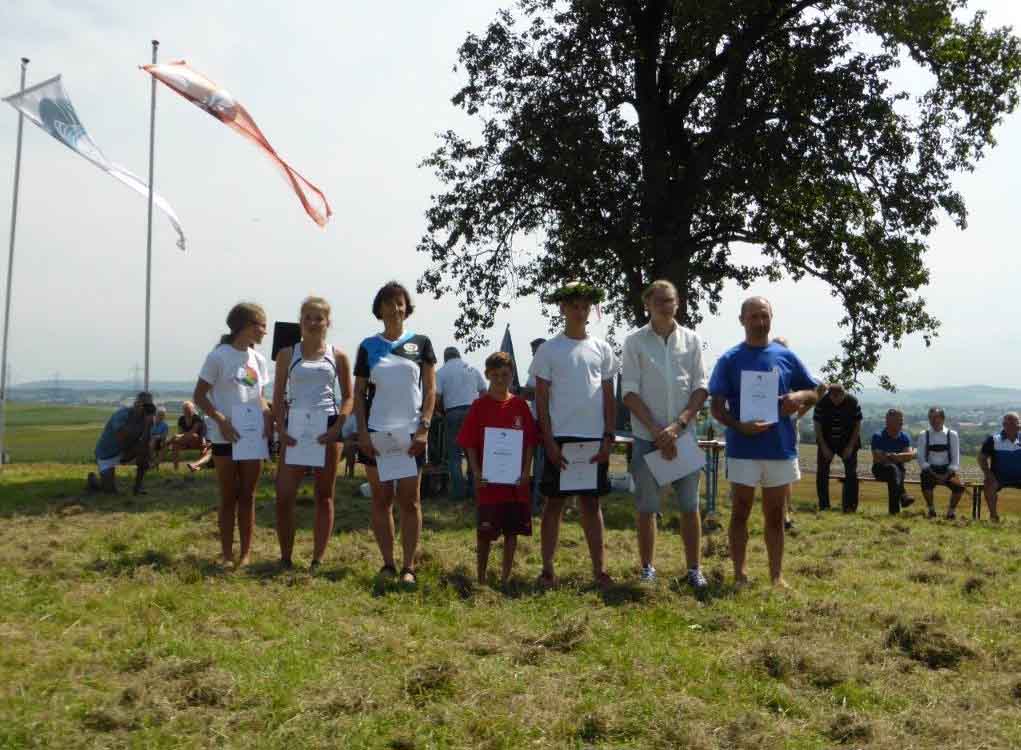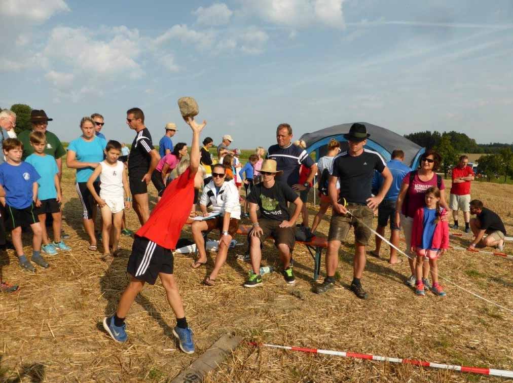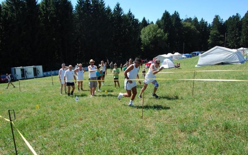34 Vereine sind in St. Georgen eingetroffen. Die Zehnkämpfe wurden am Samstag erfolgreich abgeschlossen, eine wunderbare Zeltnacht von Samstag auf Sonntag. Punkt 7:30 zur Morgenfeier und Beginn des Jahndreikampfes verabschiedete sich der heiße Sommer und die Regenzeit begann.