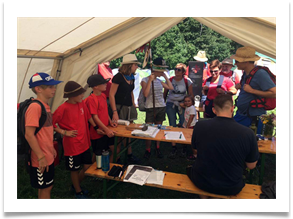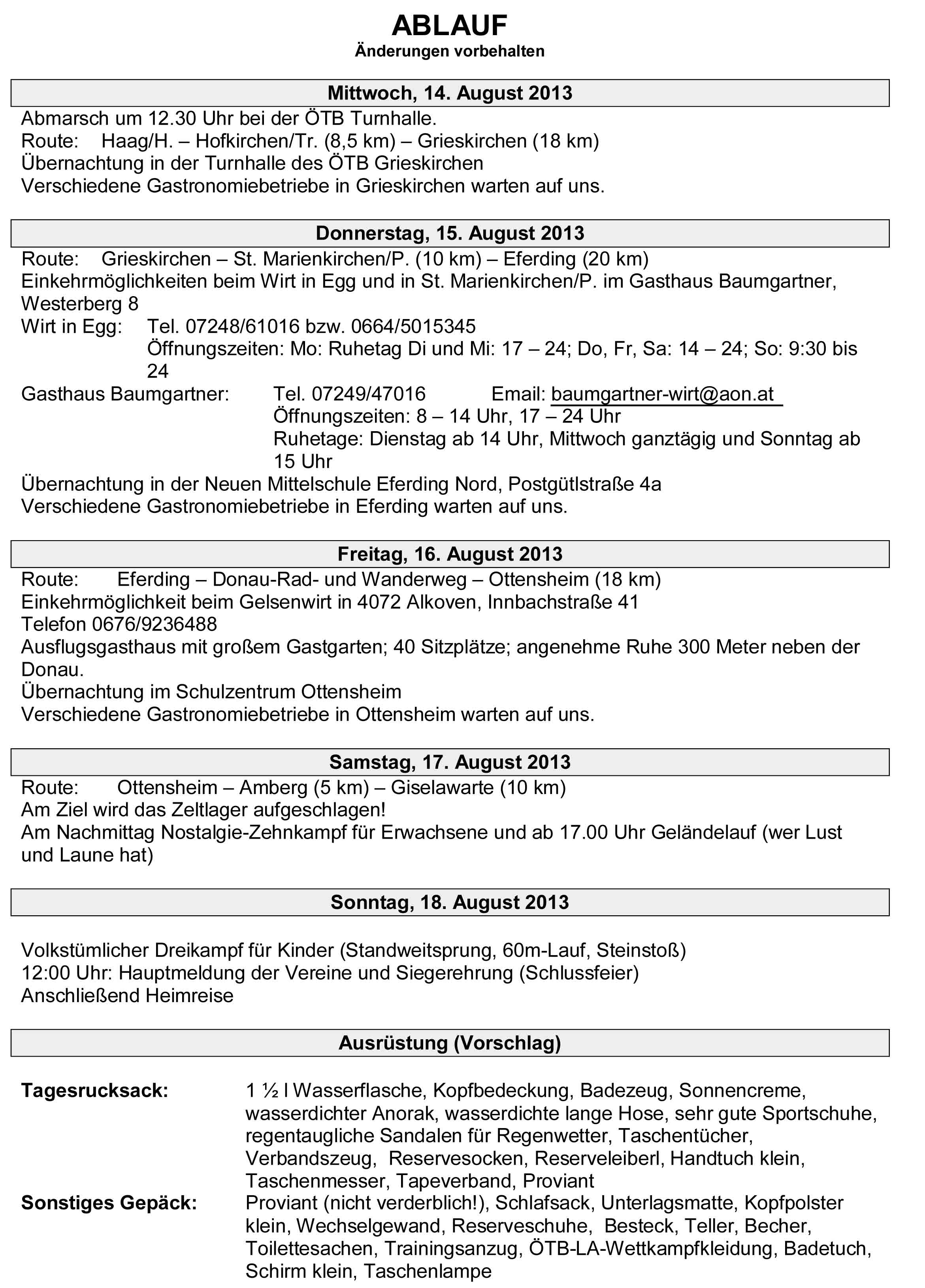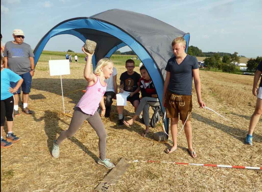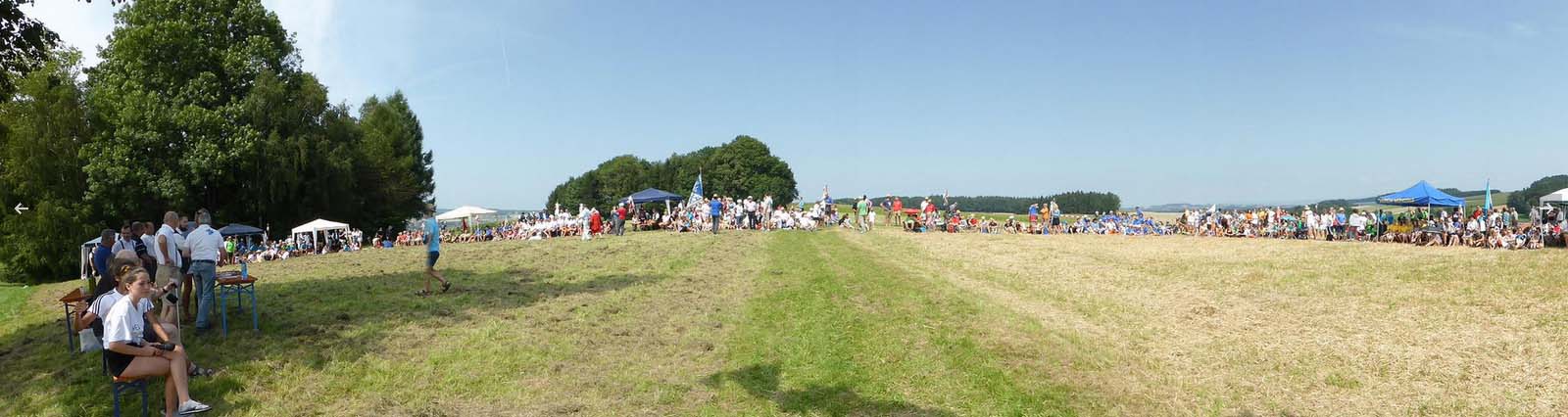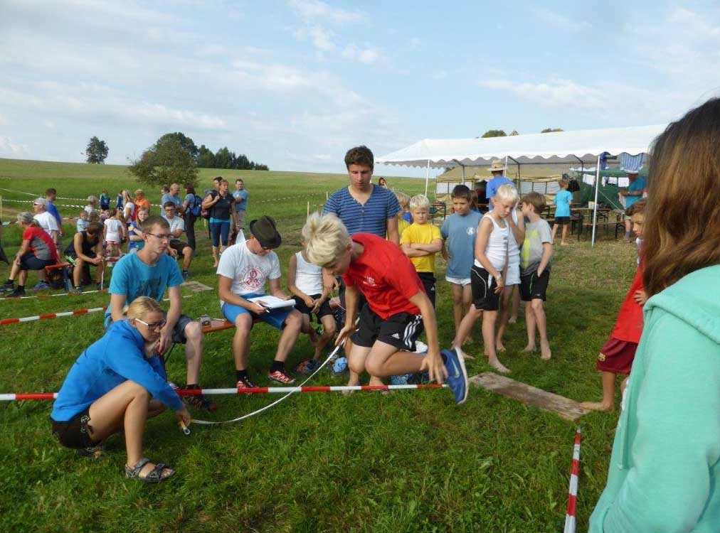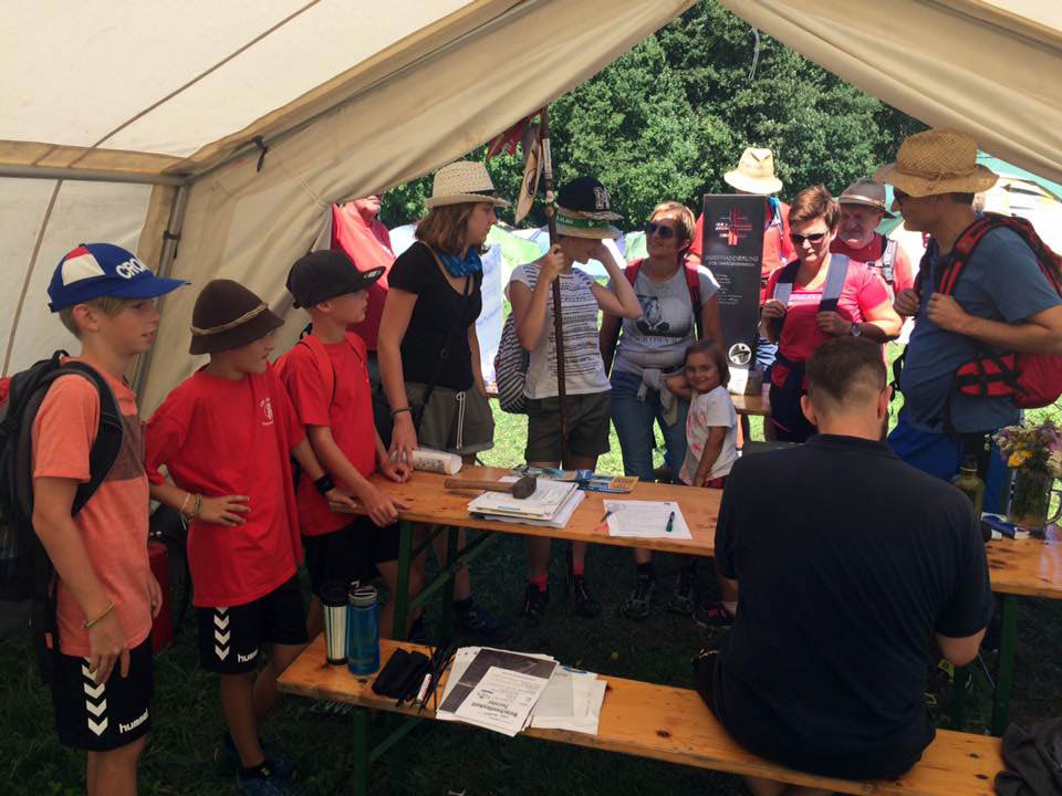 34 Vereine sind in St. Georgen eingetroffen. Die Zehnkämpfe wurden am Samstag erfolgreich abgeschlossen, eine wunderbare Zeltnacht von Samstag auf Sonntag. Punkt 7:30 zur Morgenfeier und Beginn des Jahndreikampfes verabschiedete sich der heiße Sommer und die Regenzeit begann.
