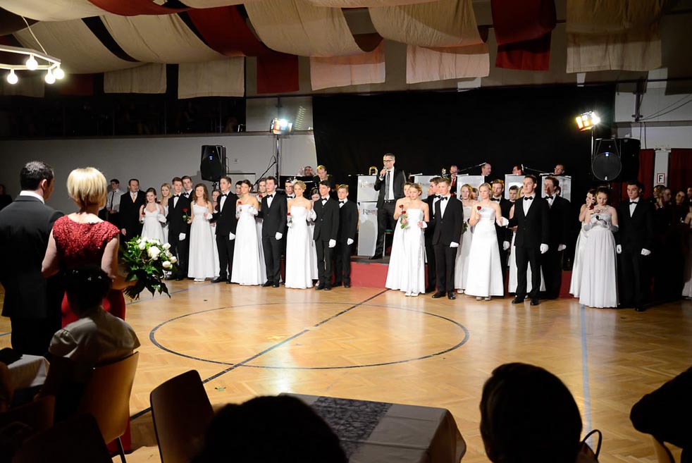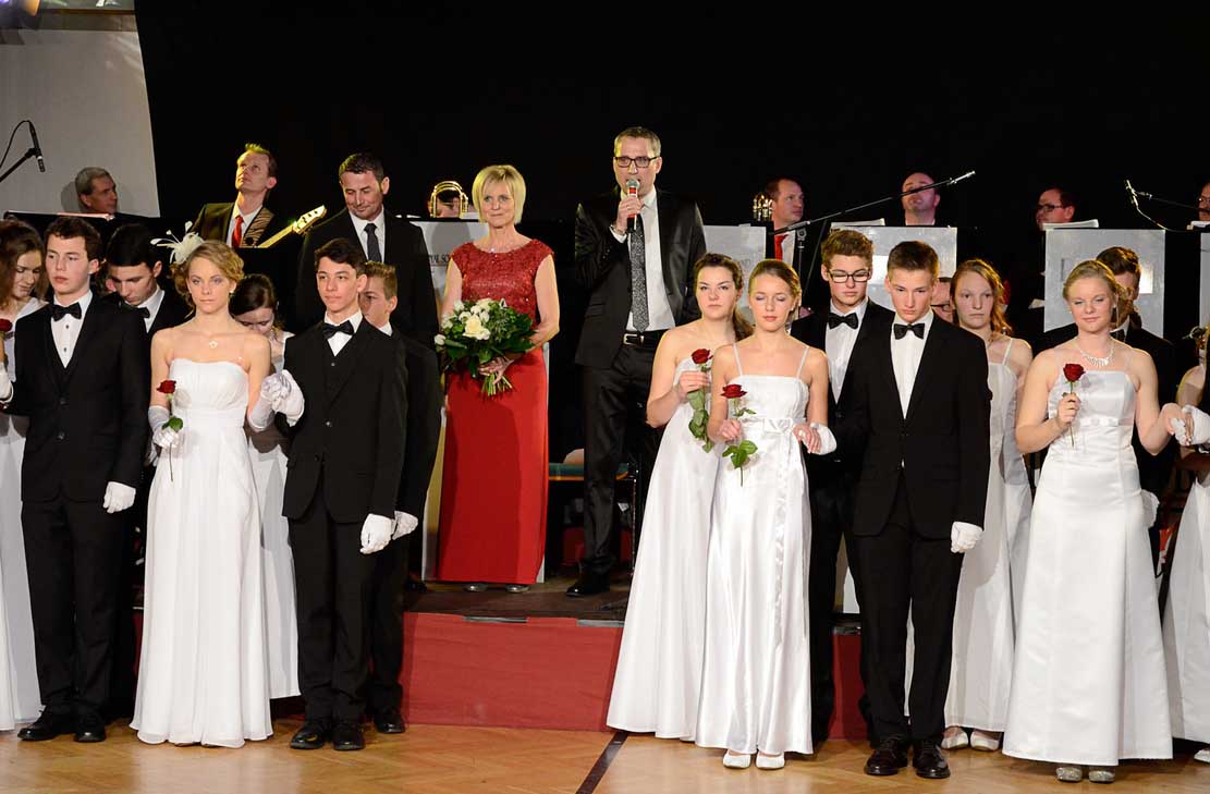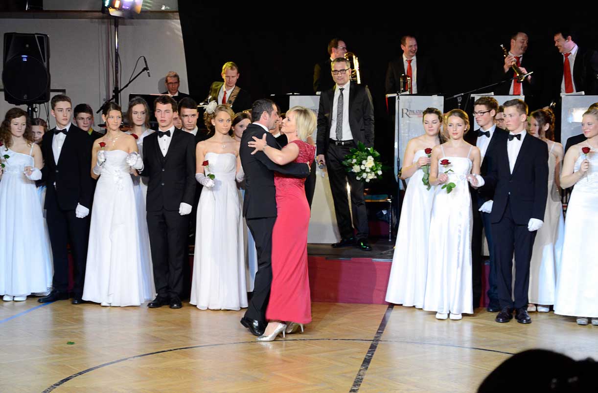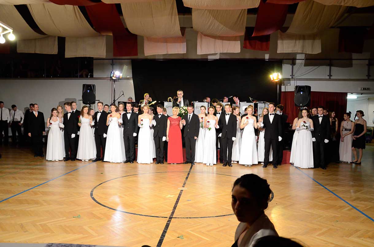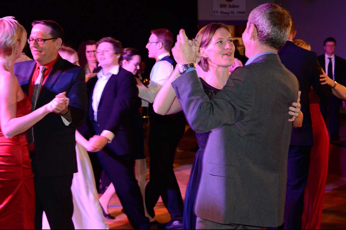 Ehrendame Elisabeth Hagelmüller und Turnwart Alexander Moosmayr eröffneten mit einem Walzer zu den Klängen der Royal Sound Big Band die Ballnacht. Weitere Höhepunkte waren eine Tombola und die Mitternachtseinlage der Jungturnerinnen.